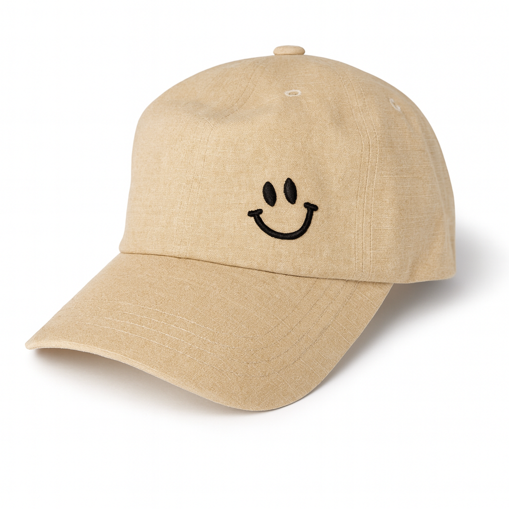 スマイル 刺繍 シンプル ウォッシュ加工 キャップ CAP