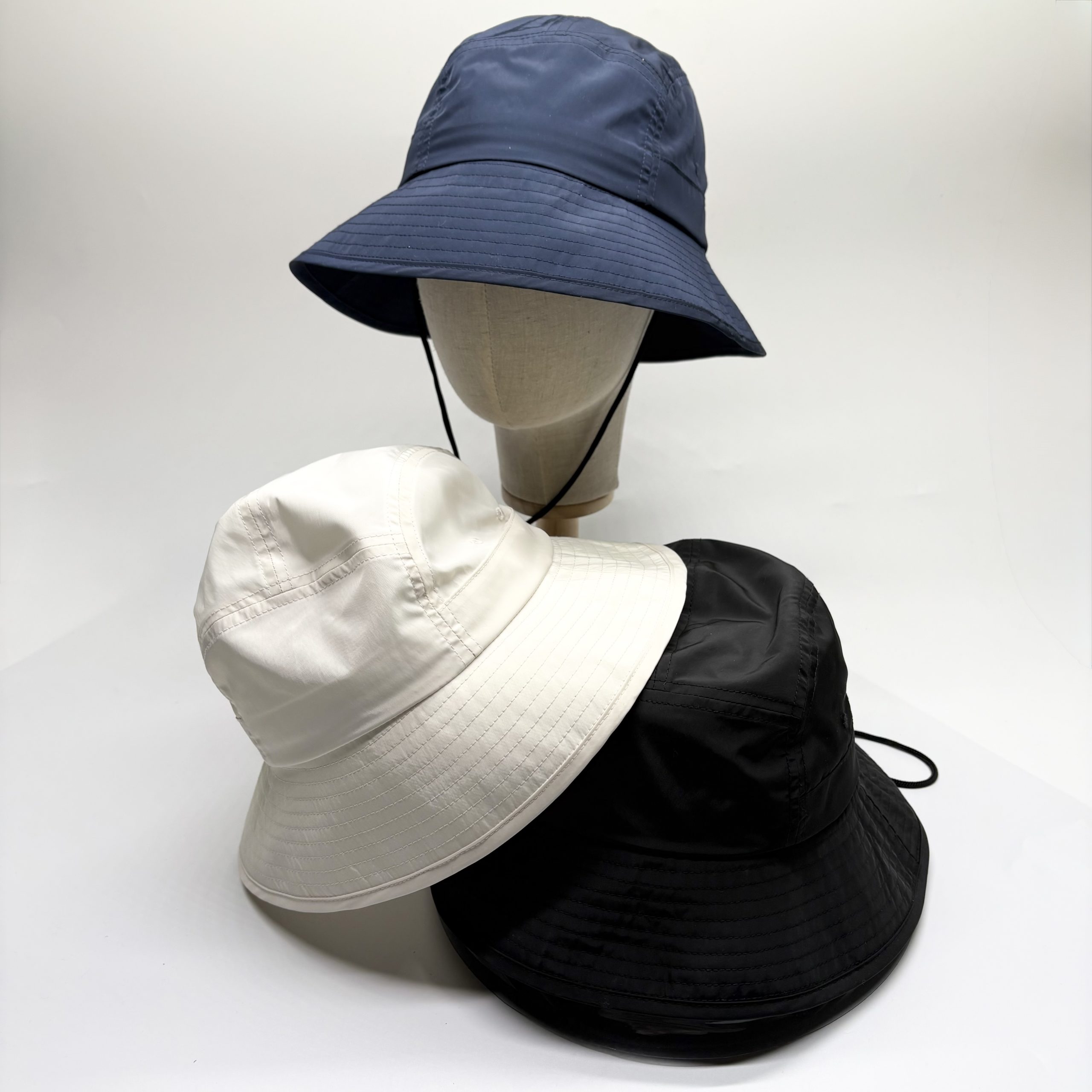 撥水加工されたナイロン風素材を採用した高機能バケットハット。